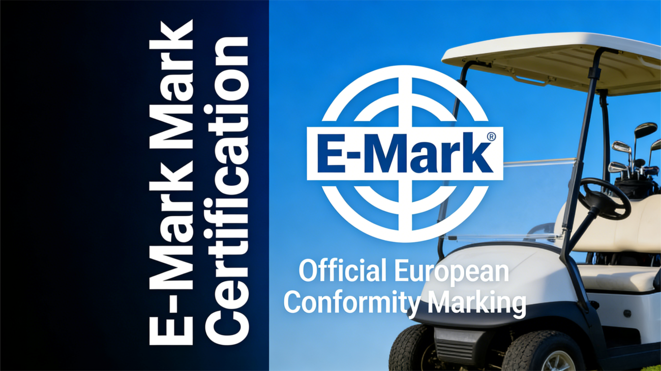 E-Mark certification (including both E-mark and e-mark) is a mandatory regulatory requirement for golf carts entering the European Union (EU) and countries that adopt United Nations Economic Commission for Europe (UNECE) regulations.