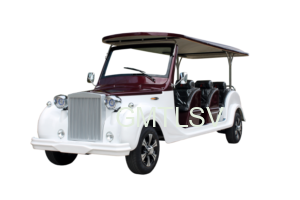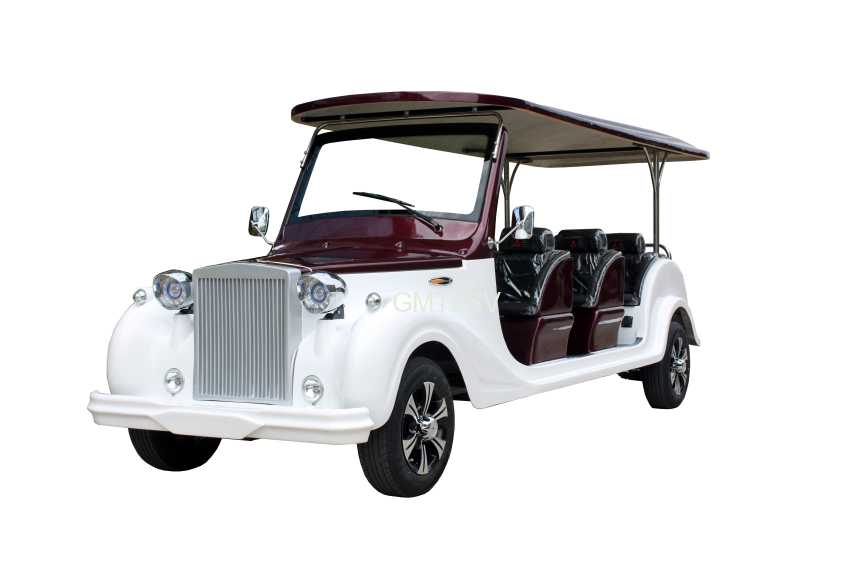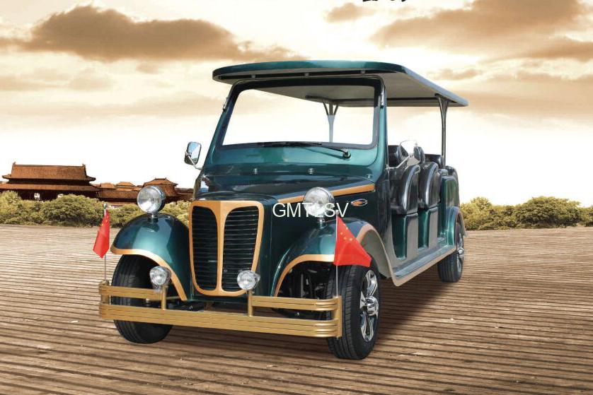 Electric sightseeing or tourists low speed car, vintage or antique old fashion, off road usage. 12 passengers.